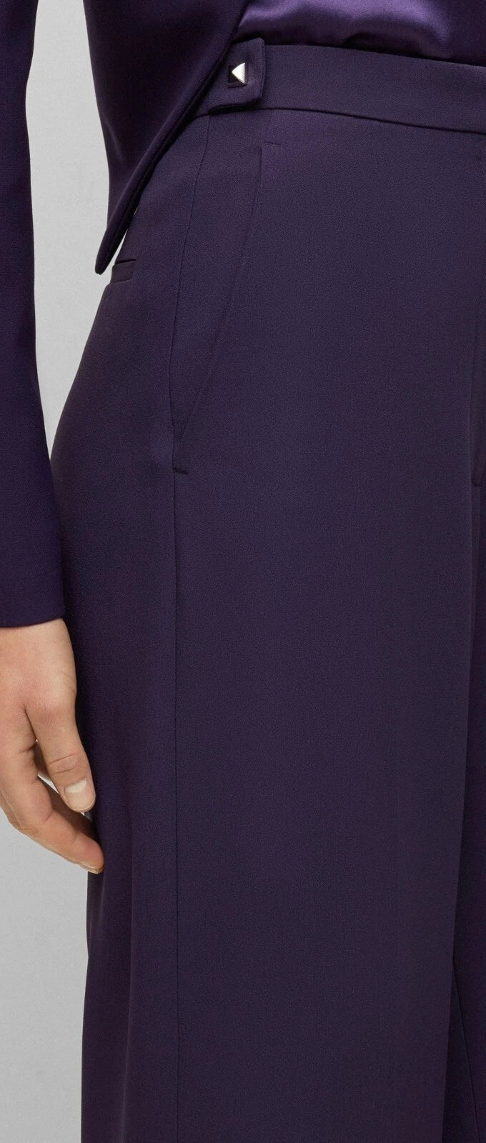 hugo boss, boss, pants, women, regular fit, flared wide legs, purple, business, casual, formal, party, cocktail, travel, wedding, workwear