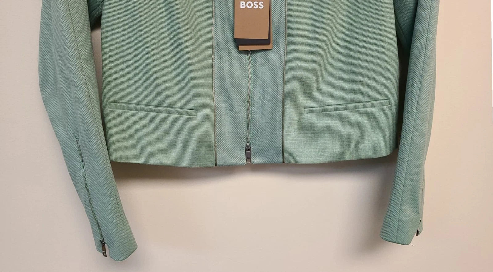 $495 - BOSS Women Short Blazer Collarless Zip Jacket Regular Fit- Size 4 - NWT