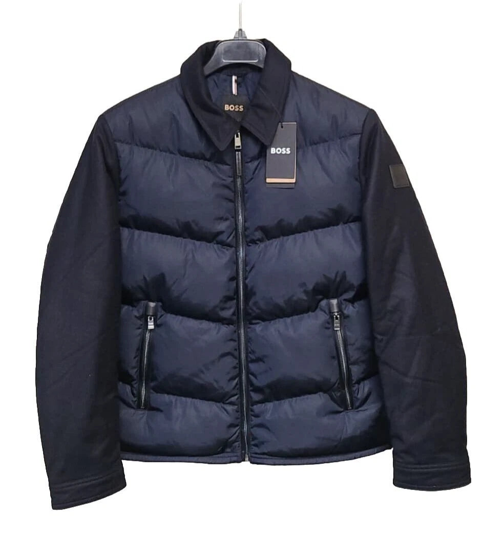 $645 - BOSS Premium Duck Down Jacket Leather Trims Water Repellent - Size 38R