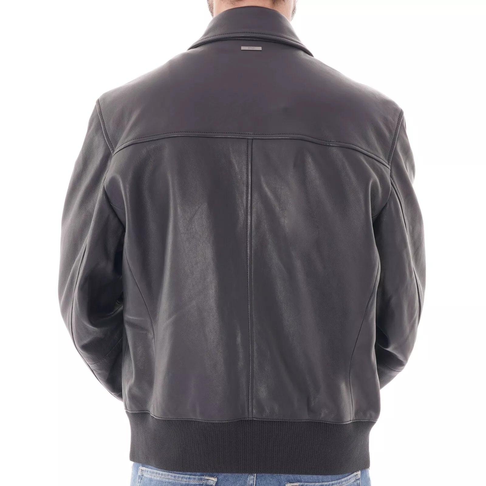 $645 - HUGO BOSS Gonel Leather Flight Jacket Ribbed Trims Regular Fit - Size 38R