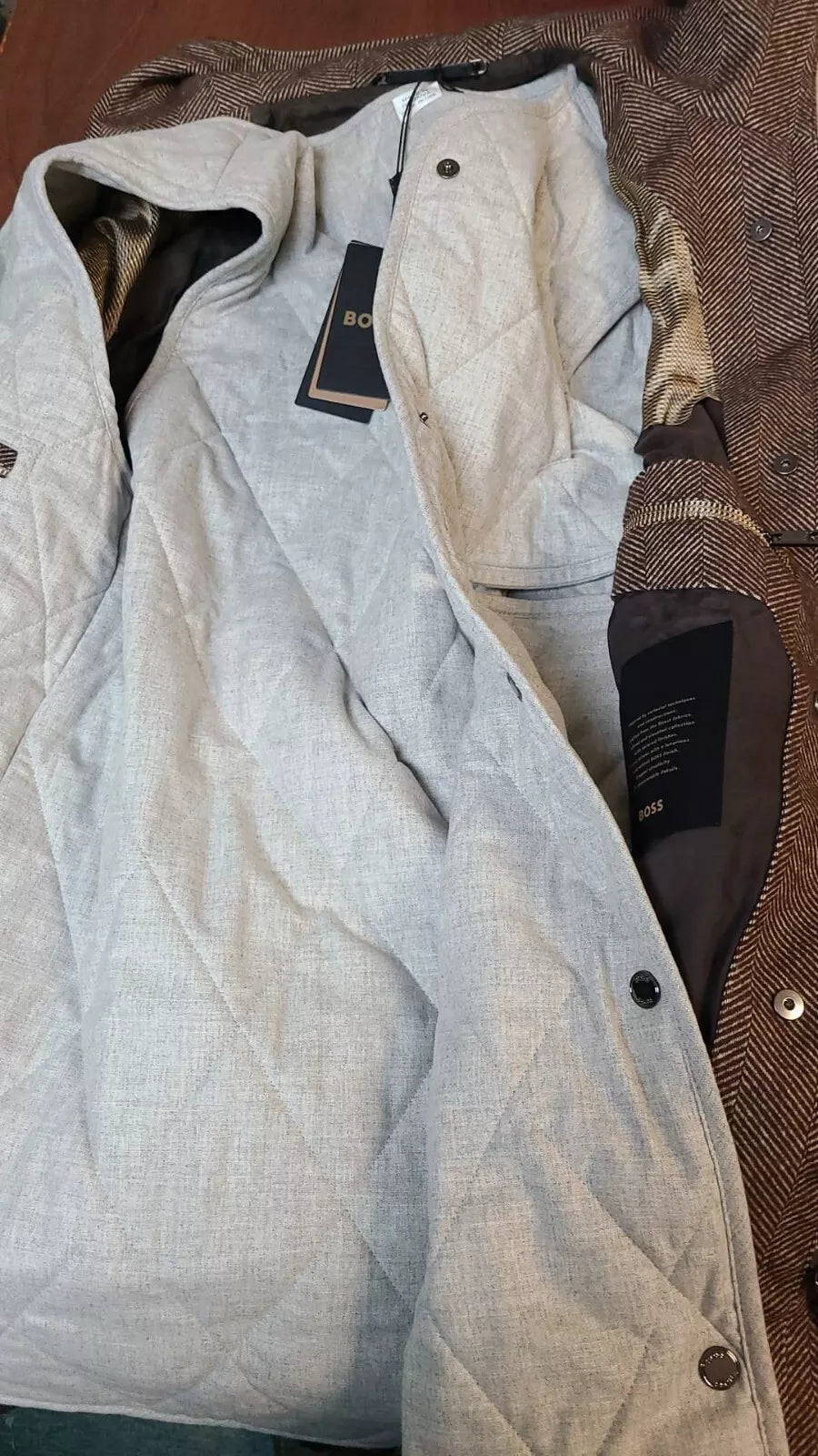 SEO Keywords: BOSS Parka Coat, Men's Brown Coat, Wool Softshell Coat, Mid-Length Coat, Designer Coat, BOSS Men's Fashion.