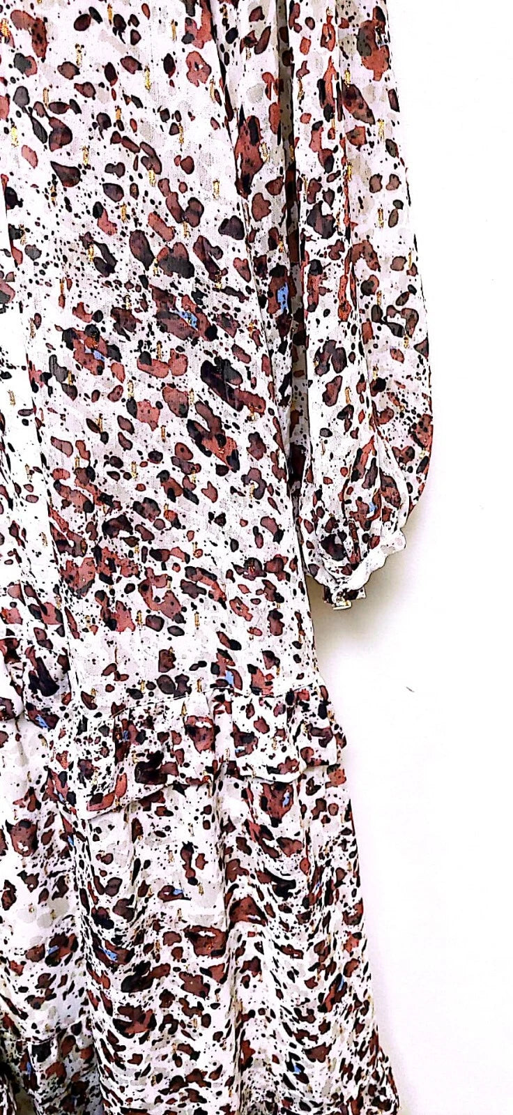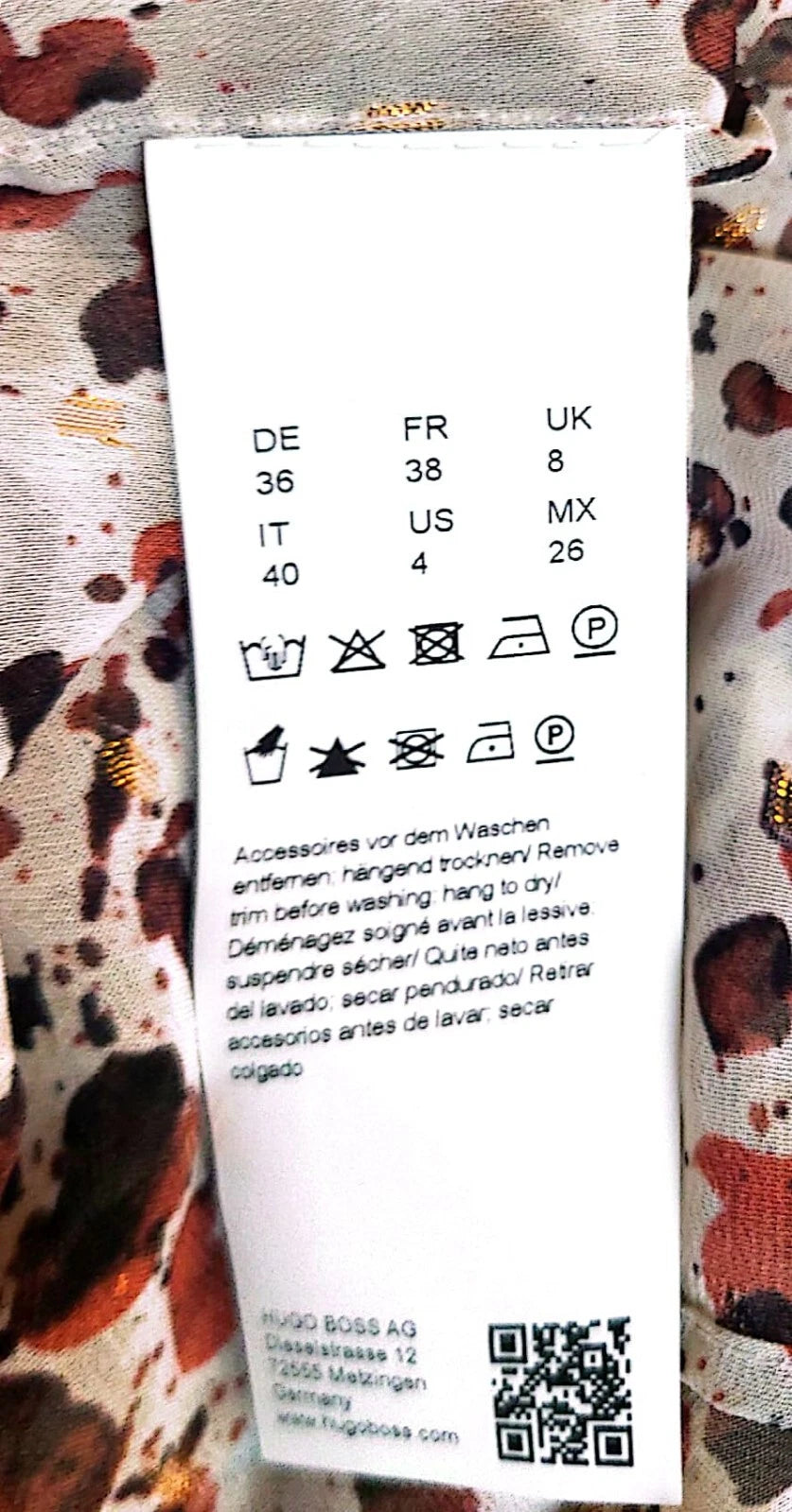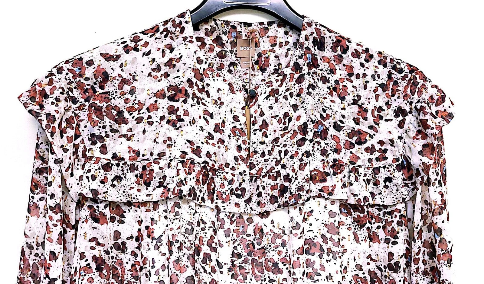 BOSS, BOSS Women, BOSS Women Maxi Dress, BOSS Women Maxi Dress with Abstract Multi Color Print in Chiffon Fabric, Polyester, Regular fit, Round Neck, Button, Long Sleeves, Slit, Machine Washable, China, Fall, Spring, Summer, Winter, Casual