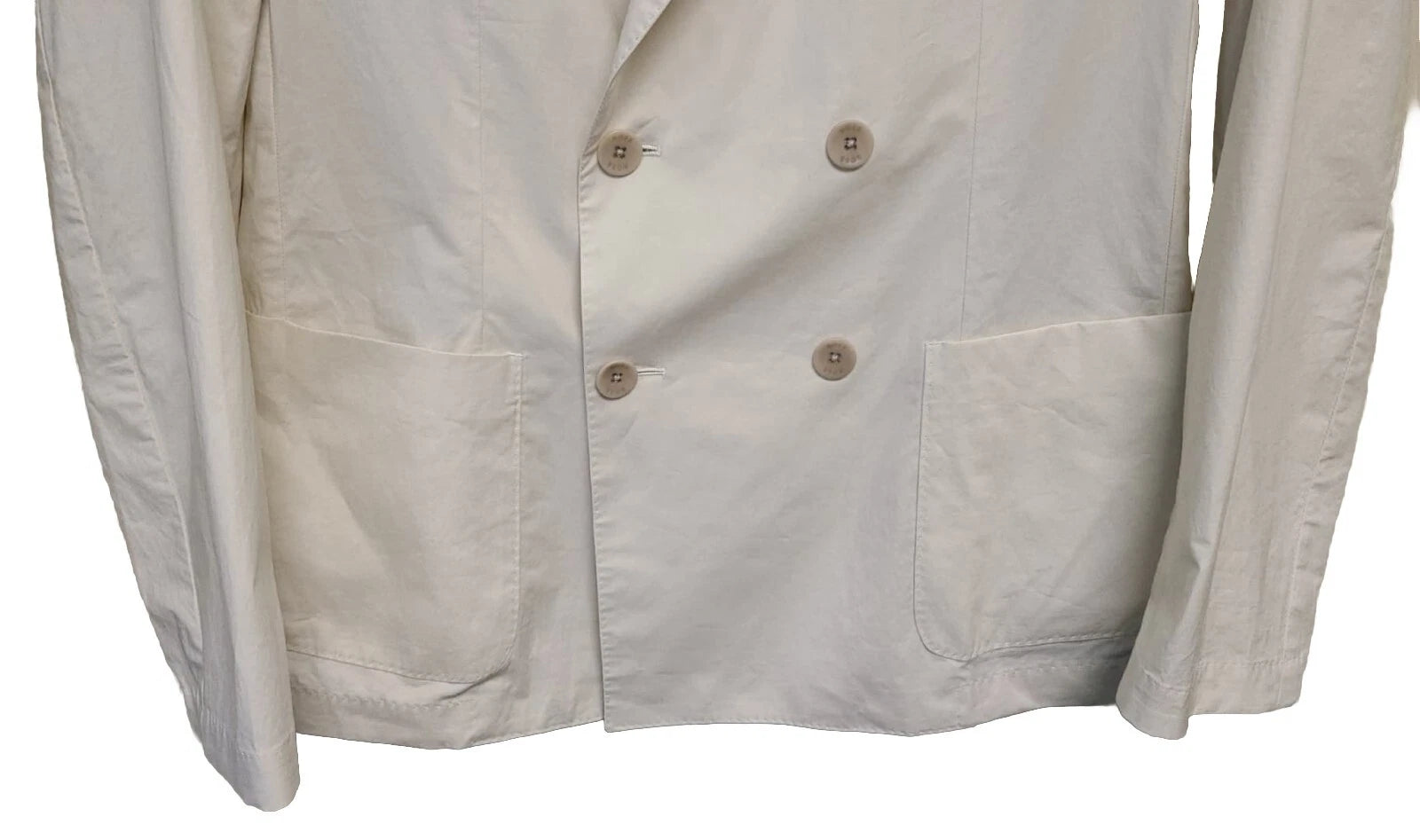 Genuine HUGO BOSS - BOSS HANRY DOUBLE-BREASTED SLIM-FIT JACKET IN STRETCH COTTON. Size 40R - US. White. Made in Germany. A contemporary take on the tailored jacket by BOSS Menswear. Featuring a double-breasted closure with signature buttons, this slim-fitting jacket is detailed with coordinating striped accents at interior. Patch pockets add further interest to this summer-ready piece. Slim fit. Notch lapels. Double-breasted. Patch pockets. Unlined. Fit back length: 30 In. 96% Cotton, 4% Elastane. Please see pictures for more details. Thank you for stopping by. Check Out My Other EBAY Items You May Enjoy.