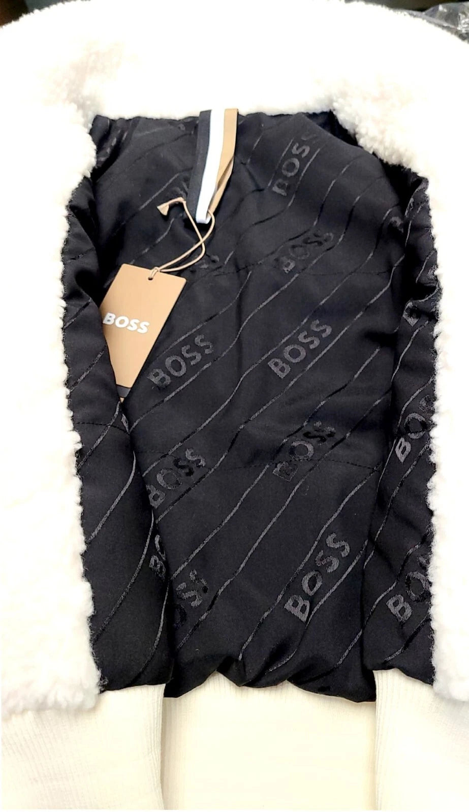 BOSS Jatedy Women Bomber style Jacket Contrast Stripes in White - Size 4 / 26
