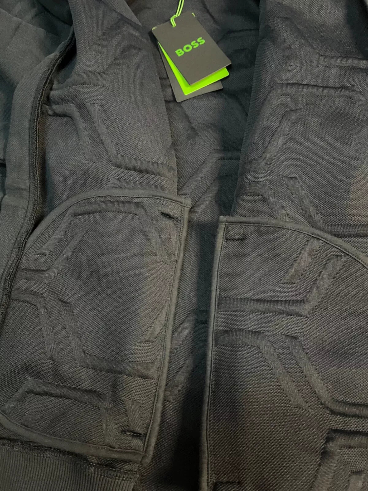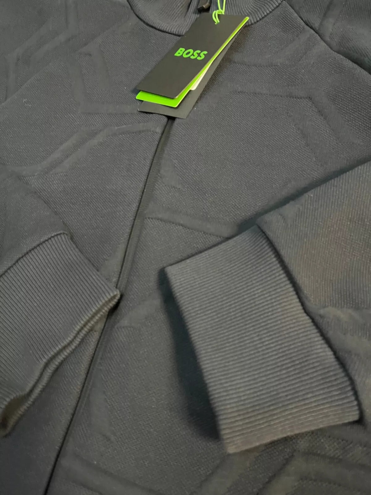 BOSS Skaz HexaQuilt Zip Sweatshirt Track Cotton Jacket with Logo Dark Blue - M