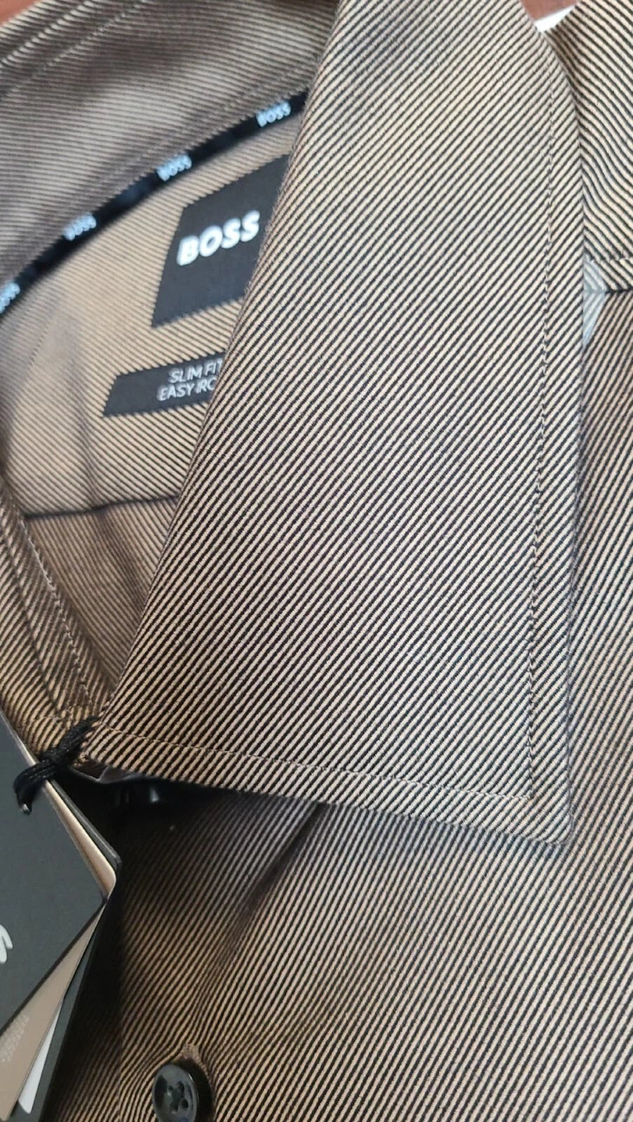 BOSS Slim Fit Dress Shirt Easy Iron Stretch Cotton Twill Brown - Size 15.7 / 40
