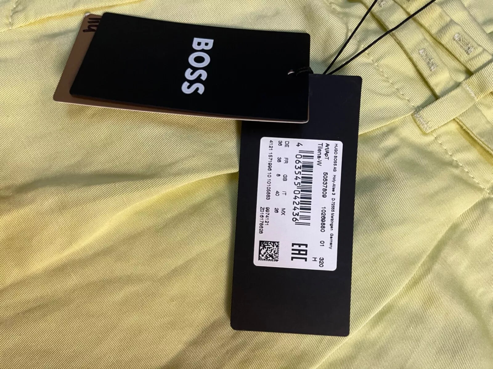 SEO Keywords: BOSS Blazer Set, Women's Yellow Blazer, Linen Blend Set, Knit Blazer, Relaxed Fit Blazer, Designer Blazer Set, BOSS Women's Fashion.