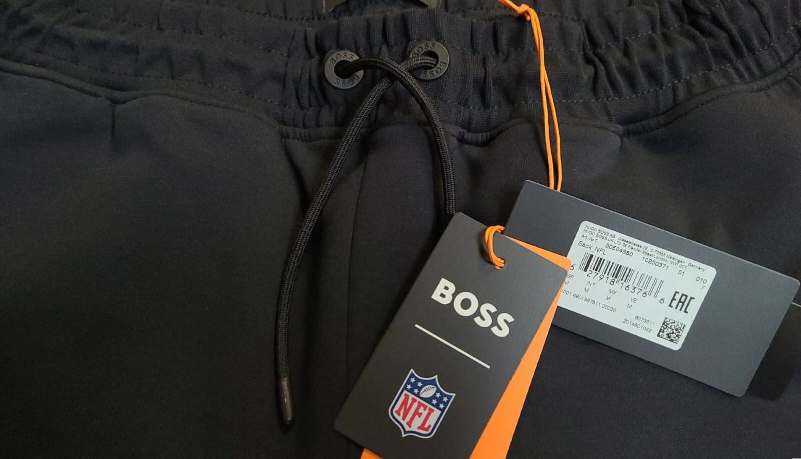 SEO Keywords: HUGO BOSS x NFL Sweatpants, Chicago Bears Sweatpants, Men's Black Sweatpants, Cotton Sweatpants, Designer Sweatpants, BOSS NFL Collection, Limited-Edition Activewear, NFL Fan Apparel.