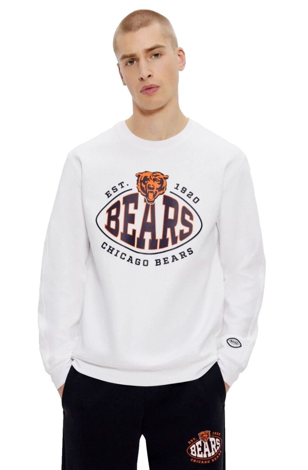 HUGO BOSS x NFL Sweatshirt, Chicago Bears Sweatshirt, Men's White Sweatshirt, Cotton Sweatshirt, Graphic Print Sweatshirt, Designer Sweatshirt, BOSS Men's Fashion, NFL Collaborative Collection.