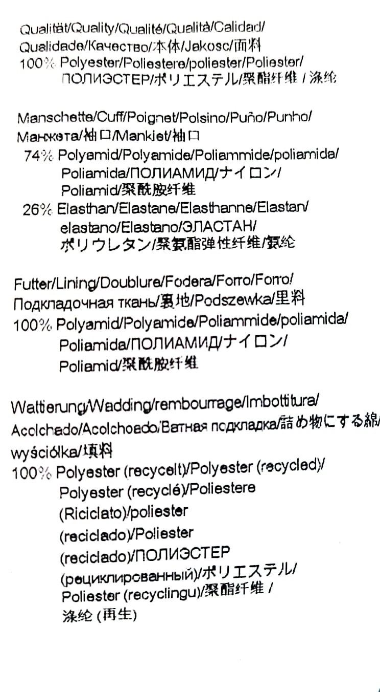 - Garment Care: Do Not Wash, Do Not Bleach, Do Not Tumble Dry, Iron Low Heat, Do not chemical dry clean, Very mild professional wet clean