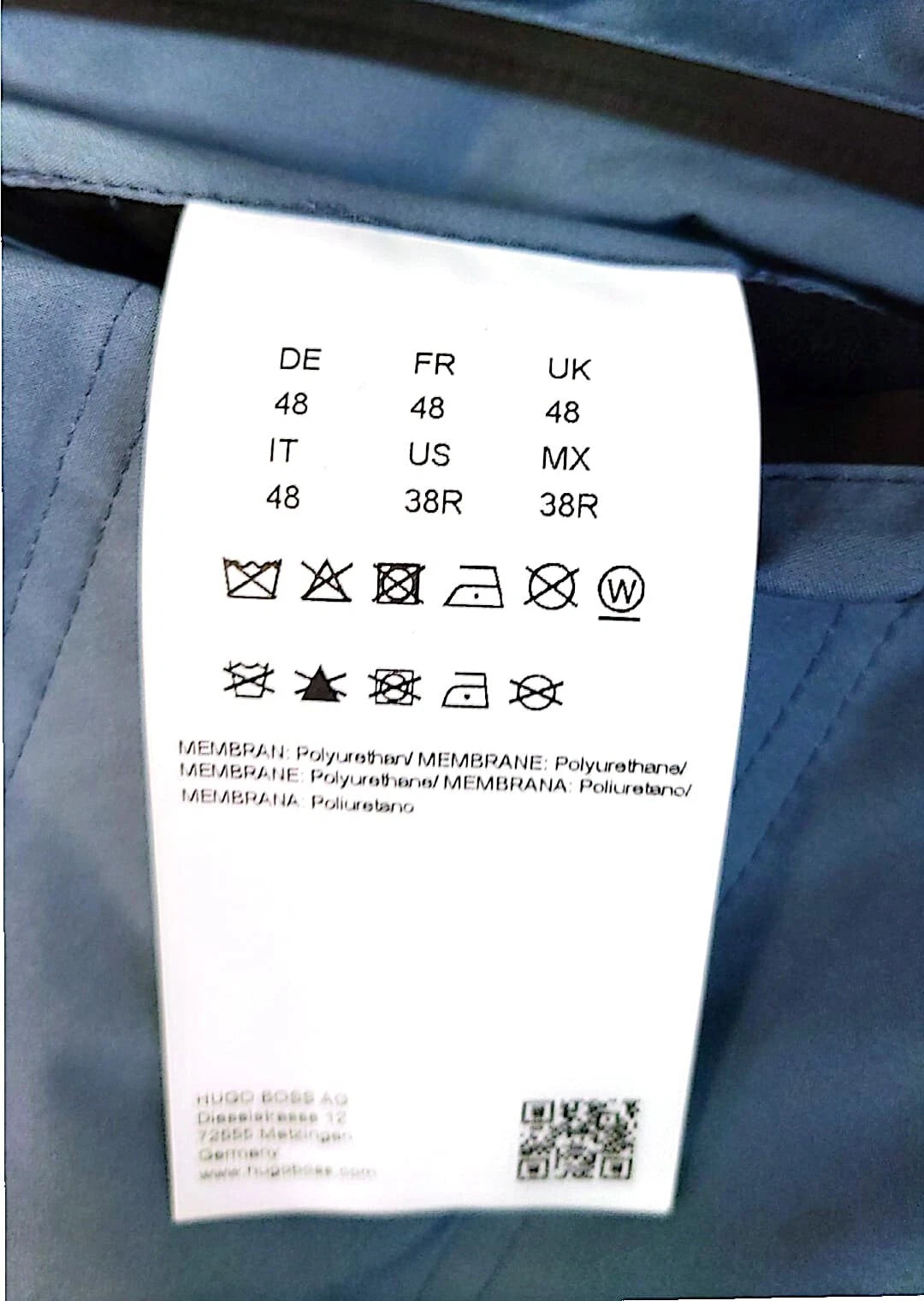 hugo boss, water-repellent, insulated, lightweight, hooded jacket, men, size 38r, light blue, polyester, casual, formal, business, party, cocktail, travel, workwear