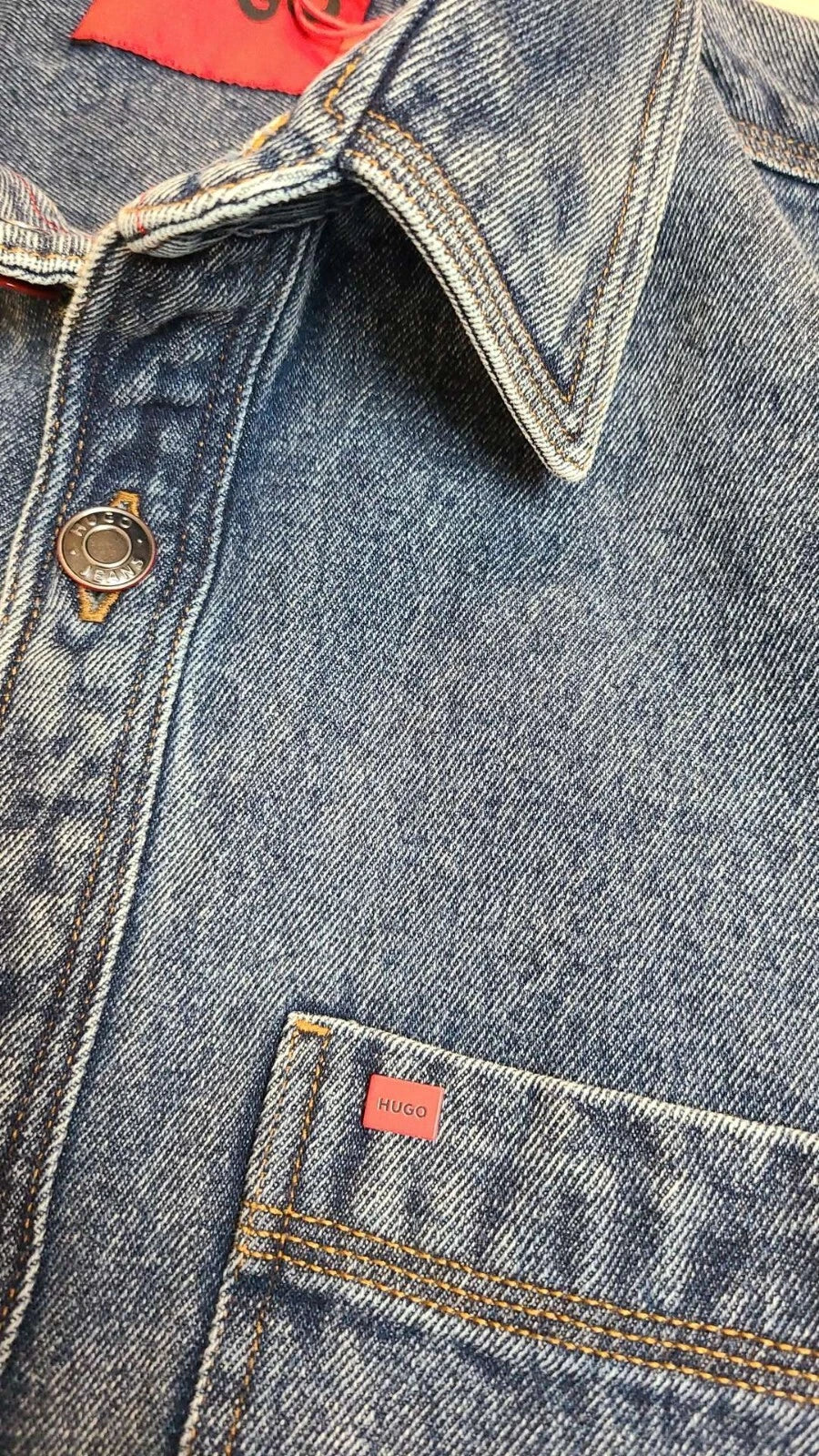 - Model: HUGO DENIM SHIRT IN COTTON WITH LOGO LABEL